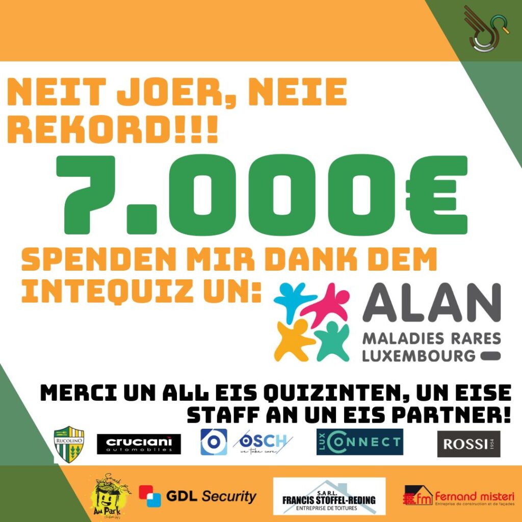 Nei Editioun, nei Rekorder! 30 Ekippen a 5 Minutten ugemellt a 7000€ fir ALAN!